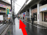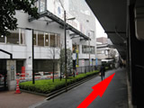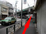 線路沿いの道幅が少し狭くなります 少し歩きますと左にメガロス吉祥寺があります |