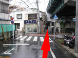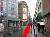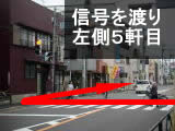 信号を渡って下さい。 5軒目にカットハウスシモヤがあります |